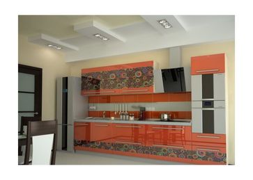 Кухни из высокопрочного стекла - триплекс. Декоративный триплекс на столько прочен, что используется для создание перегородок и лестниц. Это очень прочный, и вместе с тем красивый материал. Между двумя стеклами вставляется декоративная вставка из практически любого материала. Богатство вставок- любые текстуры и цвета (в триплекс вставляется любая пленка, ткань, или даже обои)