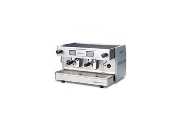 Две группы приготовления. Автомат. Электромеханический счётчик чашек. Одна трубка для пара. Один кран для кипятка. Встроенная помпа. Подключение к водопроводу