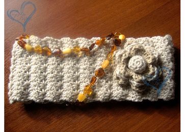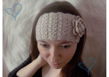 Ажурная повязка на голову, связанная крючком и украшенная очаровательным цветком.