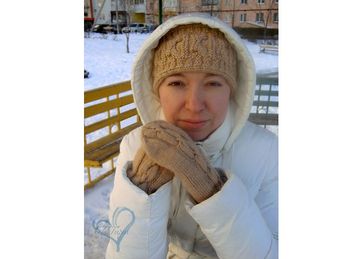 Теплая повязка на голову. Связана вручную нитью в два сложения из пряжи шерсть и акрил.