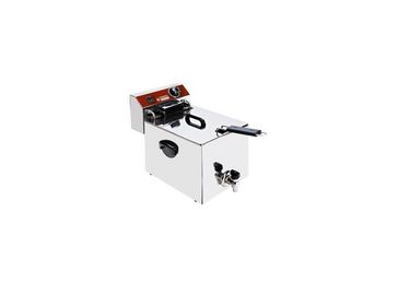 Фритюрница Diamond F10TR/X, 1 ванна, 10л, терморег., 290х450х375мм, 4.5кВт, 380ВФритюрница Diamond F10TR/X предназначена для использования на кухнях заведений общественного питания различного масштаба: небольших кафе, сетевых закусочных или пиццерий и крупных ресторанов. Нередко фритюрницу данной модели устанавливают в рабочих зонах предприятий быстрого питания (киосках уличной торговли, заведениях на фуд-кортах). Фритюрница предназначена для оперативного приготовления картофеля фри, а также для обжаривания других овощей и фруктов. Наличие фритюрницы позволит вас удивлять гоятей заведения оригинальными аперитивами, например, жареными бананами или обжаренными в кляре рисовыми шариками. Фритюрница Diamond F10TR/X имеет одну вместительную ванну, рассчитанную на заливку 10 литров масла. Установка на кухне фритюрницы данной модели позволит готовить крупные партии картофеля фри и других блюд. Обжаривание продуктов в рабочей ванне фритюрницы Diamond F10TR/X будет занимать у повара не более пяти-семи минут. Эксплуатация фритюрницы максимально проста и интуитивно понятна. Продукты закладываются в сетчатую корзину, изготовленную из термостойкой проволоки, в то время как во фритюрной ванне масло доводится до высокой температуры. Затем корзина с продуктами помещается в ванну, где продукты обжариваются до состояния румяной корочки. Фритюрница оснащена системой регулирования температуры нагрева масла. Оператор может устанавливать нужный показатель температуры в диапазоне от 0 до +180°С. Для защиты повара от брызг горячего масла фритюрница комплектуется крышкой.Фритюрница Diamond F10TR/X оснащена краном для слива отработанного масла. Наличие крана значительно упрощает очистку аппарата. Корпус фритюрницы и внутренние поверхности фритюрной ванны изготовлены из нержавеющей стали AISI 304, которая устойчива к коррозии. Фритюрница данной модели имеет оригинальный стильный дизайн, а компактные размеры позволят разместить ее на небольшой площади.</