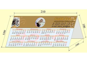 Gold Zebra Производственная дизайнерская группа ОПЕРАТИВНАЯ ПОЛИГРАФИЯ предлагает ВАМ заказать у нас: Квартальные календари состоят из постера, отрывных календарных блоков и рекламных полей. По размеру постера квартальные календари делятся на 3 типовых размера: мини (297х210мм) миди (340х230мм), макси (380х240мм). Как правило, постер квартального календаря покрывают глянцевой ламинацией. Обычно квартальные календари имеют одно или три рекламных поля. Также возможно изготовление календарей без рекламных полей. Квартальный календарь с логотипом и фирменной символикой Вашей фирмы очень эффективный рекламный носитель. Настенный календарь квартальный с фирменной символикой - отличный сувенир для ваших партнеров, друзей и сотрудников, полезное украшение вашего офиса. Календари квартальные - удачный презент Вашим деловым партнерам, который в течение года будет работать на Вас. На квартальный календарь мы установим люверс или колечко (piccolo) чтобы повесить календарь на стену, а также курсор для выделения текущей даты. Как правило, квартальные календари служат хорошим подарком сотрудникам фирмы, партнерам и заказчикам. Календари выполняются в едином корпоративном стиле. Если Вы подарите квартальный календарь Вашей фирмы с оригинальным дизайном, он весь год будет служить эффективной рекламой Ваших товаров или услуг. Дизайн календарей производится отдельно ( цены в прайс-листе)