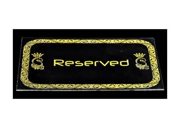 Для ресторанов, кафе, баров важно иметь стильные таблички на стол. Это могут быть таблички "Зарезервировано", таблички с рекламными предложениями или меню. Также таблички на стол нужны при организации торжественных мероприятий, например, юбилеев или свадеб. На таких табличках размещается информация по приглашённым гостям. Таблички изготавливаются из акрилового стекла различных цветов и фактур. Этому стеклу можно придать необходимые изгибы, нанести гравировку и выполнить затирку краской.