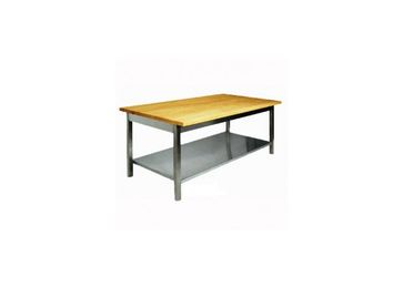 Габаритные размеры: 2000х800х850 мм. Масса: 63,3 кг. Материал столешницы: бук толщ. 40 мм. Каркас: сварной, н/сталь AISI 304. Объём: 1,4 м3. Прочие характеристики: полка, регулирование высоты.