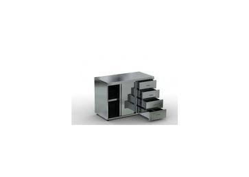 Стол-тумба предназначена для обработки пищевых продуктов и хранения кухонного инвентаря и сыпучих продуктов. Во внутреннем объеме предусмотрена нержавеющая полка и двери-купе, 4 выдвижных ящика позволяют использовать стол-тумбу для хранения кухонных приборов. Конструкция стола состоит из столешницы и каркаса. Столешница изготовлена из пищевой нержавеющей стали марки aisi 430, с внутренней стороны укреплена листом ламинированной ДСП, что увеличивает её прочность. Каркас сварной из нержавеющей стали марки aisi 430.Артикул Габариты (ДхШхВ)мм Цена, руб. СТ/1-120/60 1200х600х870 25 071 СТ/1-150/60 1500х600х870 <td width=99 height=2