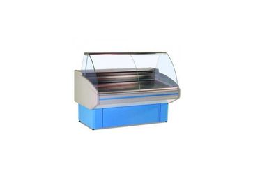 Встроенный холодильный агрегат «Aspera». Электронный пульт управления. Статическое охлаждение. Запасник. Люминесцентные лампы для подсветки экспозиции. Верх светильника в качестве полки для выкладки. Цветовое решение 3000 RAL (красное пламя), 5012 RAL (легкий синий). Автоматическая оттайка.