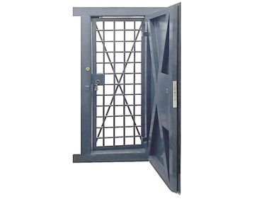 Двери в комнату для оружейного помещения имеет сплошное полотно, толщина которого не менее 2 мм. Периметр усиливается стальным профилем. Комплект дополняется дверью-решеткой. Спец-двери снабжены усиленными ригелями, петлями и дополнительными замыкающими устройствами. Монтируются отверстия для опечатывания, конструктивные элементы навесных нормативных актов силового ведомства. None