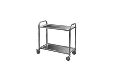 Тележка сервировочная c 2-мя полками предназначена для перемещения на предприятиях общественного питания, продуктов, готовых блюд, напитков, и посуды, а также для подачи грязной посуды из зала в моечное отделение. Тележка сервировочная имеет прочную сварную конструкцию, две полки и снабжены колесами, смягчающими вибрацию. Пара колес сервировочной тележки дополнительно снабжена блокировкой. Технические характеристики:
