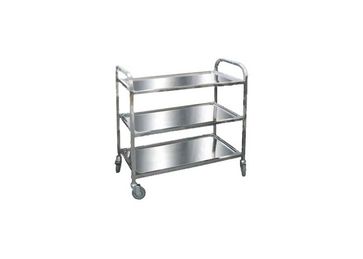 Тележка сервировочная c 3-мя полками предназначена для перемещения на предприятиях общественного питания по залу продуктов, готовых блюд, напитков и посуды, а также для подачи грязной посуды из зала в моечное отделение. Тележка имеет цельносварной каркас, выполненный из пищевой нержавеющей стали квадратного профиля, полки, выполненные из пищевой нержавеющей листовой стали и четыре колёсные опоры. Одна колёсная опора снабжена стопорным (тормозным) устройством, предотвращающим нежелательное перемещение тележки. Технические характеристики: