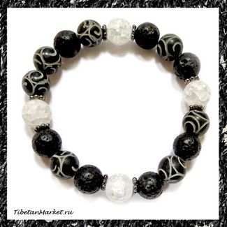 Браслет ручной работы из натуральных камней: лава, агат, ледяной кварц None Есть доставка.