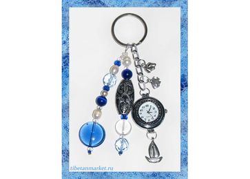 Брелок ручной работы с часами, сделан из металла, бусин и бисера None Есть доставка.