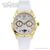Особенности:Кварцевые часы. Калибр Ronda 706. 12 часовой формат времени. Индикатор числа, дня недели и фазы луны. Корпус украшен цирконами. Корпус из нержавеющей стали с желтым PVD покрытием. Минеральное стекло. Силиконовый ремень. Диаметр 35 мм.
