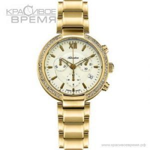 Особенности:Кварцевый хронограф. Калибр Ronda 5030. 12 часовой формат времени. Секундомер. Индикатор числа. Корпус украшен цирконами. Корпус и браслет из нержавеющей стали с PVD покрытием цвета золота. Сапфировое стекло. Диаметр 35 мм.