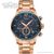 Особенности:Кварцевые часы с хронографом. Корпус и браслет выполнены из нержавеющей стали с IPG покрытием. Темно-синий циферблат с центральной секундной стрелкой и люминесцентным покрытием делений и стрелок. Индикация даты.