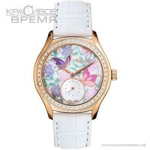 Особенности:Женские часы. Кварцевый механизм Ronda. Корпус выполнен из нержавеющей стали с покрытием цвета золота. Диаметр корпуса 36 мм. Ремешок из натуральной кожи. Корпус украшен фианитами.