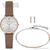 Особенности:Комплект из часов, сережек и браслета из нержавеющей стали с логотипом. Корпус часов выполнен из нержавеющей стали с IPRG покрытием . Циферблат на месте меток украшен кристаллами. Коричневый кожаный ремешок.