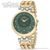 Особенности:Кварцевый механизм. Зеленый циферблат украшен кристаллами Swarovski. Минеральное стекло. Корпус и браслет выполнены из нержавеющей стали с покрытием цвета золота. Диаметр корпуса 32 мм.