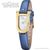 Особенности:Кварцевые часы. 12 часовой формат времени. Перламутровый циферблат. Корпус из нержавеющей стали с IP покрытием цвета золота. Минеральное стекло. Текстильный ремень на кожаной подкладке. Размер корпуса 19х29 мм.
