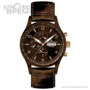 Особенности:Кварцевый хронограф. 12/24 часовой формат времени. Секундомер. Тахиметр. Индикатор числа. Корпус из нержавеющей стали с IP покрытием. Минеральное стекло повышенной прочности. Кожаный ремень. Диаметр 44 мм.