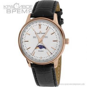 Особенности:Кварцевые часы. 12 часовой формат времени. Индикатор числа, дня недели, месяца и фазы Луны. Корпус из нержавеющей стали с IP покрытием цвета розового золота. Пластиковое стекло. Кожаный ремень. Диаметр 38 мм.