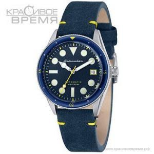 Особенности:Механические часы с автоподзаводом. Корпус выполнен из нержавеющей стали. Безель с IP покрытием. Люминесцентные стрелки и метки. Кожаный ремешок синего цвета. Индикация даты.