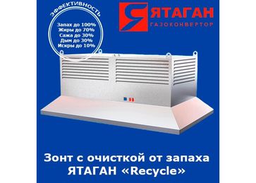 Автономный Воздухоочиститель Ятаган «Recycle» - вытяжной зонт со встроенными вентиляторами и системой очистки воздуха от жиров и запахов. Выброс очищенного воздуха производится в исходное помещение.