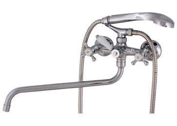 Смеситель Elghansa для ванной комнаты, гусак поворотный, двухрычажный, хромированный, имеет подставку для душевой лейки, керамические кранбуксы. Производитель Elghansa (Германия), Гарантия 5 лет. Доставка 300 руб. None Есть доставка. Доставка: 300.0RUR