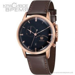 Особенности:Кварцевый хронограф. Секундомер. Индикатор числа. Корпус из нержавеющей стали с розовым PVD покрытием. Минеральное стекло. Кожаный ремень. Диаметр 42 мм.