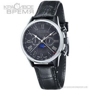 Особенности:Швейцарский кварцевый механизм, фаза луны, индикация дня и даты, корпус выполнен из нержавеющей стали, кожаный ремень, диаметр - 41мм, водозащита 5 атм