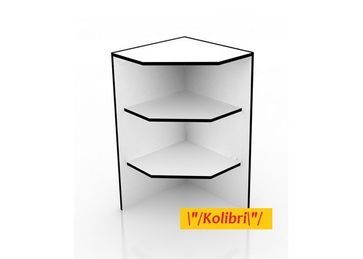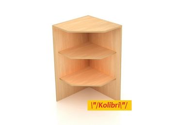 Угловой внешний "Глухой" прилавок ПР-33 с двумя полками ДСП. Изготовлен из ЛДСП 16мм с кромкой ПВХ. Со стороны продавца прилавок открыт.