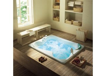 Двойная ванна для углубленной установки с рамой.Функции:12 гидромассажных форсунокпанель управления и пульт управленияцифровая регулировка интенсивности массажатаймерпоясничный массажшейный массаж 2 форсункипульсирующий массажавтоматическая обработка водысистема Hydro Clean Systemподводный светильникуровнемернагревательобъём воды 500 л. (до уровня переливного отверстия). при заказе от 30 тысяч рублей - 100% предоплата. Есть доставка.