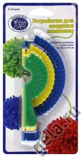 Создайте помпоны своими руками! С помощью помпонов можно создавать игрушки, украшать детские и молодежные шапочки, одежду, пледы и коврики. С помощью этого устройства Вы создадите яркие и оригинальные трикотажные вещи, домашний декор. Примерные размеры помпонов 4, 5, и 8 см. Инструкция по созданию помпонов прилагается. None Возможен самовывоз. Есть доставка.
