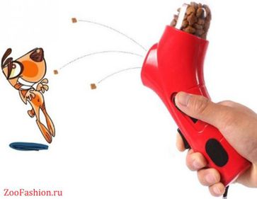Устройство для запуска корма для собак, или пистолет катапульта еды для собак превратит процесс корма в увлекательную и интересную игру для Вашего питомца. Положите немного сухого корма в катапульту, оттяните рычаг, нажмите кнопку - и кусочек корма полетит в воздух, а собака будет с радостью его ловить, выполняя интересные трюки на лету. None