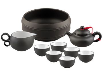 Набор для чайной церемонии из Исинской глины. В набор входит: Чайник с фильтром в виде «птичьей клетки», Ча Хай и 6 чашек с обливной глазурью внутри, а так же Ча Чуань – Чайная Лодка. None