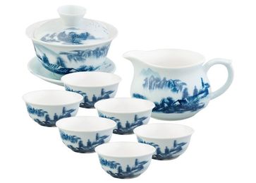 Подарочный чайный набор из фарфора для проведения чайных церемоний: гайвань 160 мл, ча хай 180 мл, чашки 30 мл.Подглазурная роспись. None