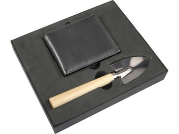 Набор Финансовый успех станет отличным подарком для шефа или нацеленного на карьеру коллеги: в набор входит лопата чтобы грести деньги и кошелек, в который эти деньги нужно складывать. Любой человек с чувством юмора высоко оценит такой подарок и никогда не забудет дарителя! Тиснение (Блинт) на данный товар осуществляется бесплатно. Оплачивается только настройка оборудования в размере 3000 рублей на весь тираж. None