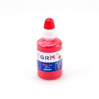 Штемпельная краска GRM, красная Штемпельная краска для заправки штемпельных подушек. Подходит для использования со всеми видами резиновых и полимерных клише. Подходит для всех видов бумаги, кроме глянцевой. Не содержит спирт.
