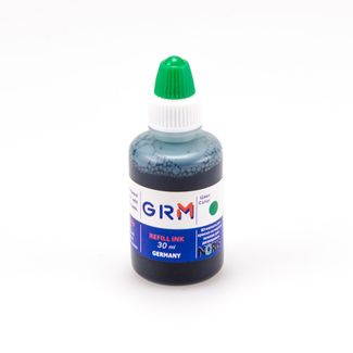 Штемпельная краска GRM, зелёная Штемпельная краска для заправки штемпельных подушек. Подходит для использования со всеми видами резиновых и полимерных клише. Подходит для всех видов бумаги, кроме глянцевой. Не содержит спирт.