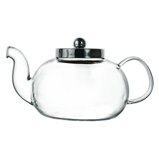 Стеклянный чайник объемом 1000 мл с фильтр-пружинкой в носике и металлической крышкой. None