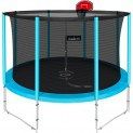 Clear Fit ElastiqueHop Basketball 10ft Батут с баскетбольным щитом диаметром 10ft (305 см) Технические характеристики: . Тип защитной сетки: внутренняя . Рама: высококачественная гальванизированная сталь 38 х 1,5 мм . Ножки W-формы: 4 шт (стальные трубы 38 x 1,3 мм) . Система крепления рамы и опор: T-образный кронштейн (толщина стали 1,65 мм) . Материал прыжкового полотна: Permatron . Диаметр прыжкового полотна: 2,62 м . Ширина защитного мата: 30 см . Количество слоев защитного материала: 3 шт . Материал верхнего слоя защитного мата: PVC . Мягкий центральный слой защитного мата (толщина EPE): 20,45 мм . Материал нижнего слоя защитного мата: PE material . Материал сетки: 100% polyethylene (PE) . Вход: усиленная молния, дополнительная защита открывания . Количество пружин: 48 шт (гальванизированная сталь) . Длина пружин и толщина стальной нити: 140 x 3,1 мм . Количество верхних стоек: 8 шт (стальные трубы 25 x 1,2 мм) . Материал внешнего слоя обшивки стоек: PVC . Внутренний (мягкий) слой обшивки стоек (толщина EPE): 7,5 мм . Антикоррозионное покрытие труб конструкции: двойная оцинковка . Баскетбольный щит: полипропилен (75 х 51 см), со специальным стальным крепежом для установки на батут . Кольцо: сталь в мягком материале с сеткой . Сертификат качества: CE, GS, ISO 9001 . Цвет: - обшивки стоек: бирюзовый - защитного мата: бирюзовый . Артикул: cfeh_10ft_basket . Гарантия: 1 год . Торговая марка: Франция . Страна изготовления: Китай . Максимальный вес пользователя: 150 кг В комплекте: . Батут . Защитная сеть . Баскетбольный щит с креплением . Баскетбольное кольцо с сеткой . Баскетбольный мяч с насосом . Набор ключей для сборки . Инструкция на русском языке Размеры и вес в упаковке: - 1 упаковка: 125 х 45 х 20 см (батут) - 1 упаковка: 129 х 38 х 17 см (батут) - 1 упаковка: 51 х 77 х 7 см (баскетбольный щит) - общий вес в упаковке: 64 кг Высота батута с баскетбольным щитом: 300 см Высота защитной сети: 180 см Высота рамы: 65 см Вес: 59,3 кг Описание: Б