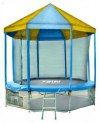 OPTIFIT Like Blue 14ft 4,27 м (с крышей) Батут диаметром 14 футов (4,27 м) с крышей, защитной сеткой, лестницей, нижней защитной сетью и крепежом Технические характеристики: . Рама: 12 стальных труб оцинкованных снаружи и изнутри . Профиль рамы: ш38 Ч 2 мм . Пружины: 84 шт, длина 165 мм, цинковое покрытие, закаленная сталь, клиновидный дизайн . Материал прыжковой поверхности: полипропилен США . Мягкое покрытие для рамы и пружин: ПЭ, внутри пеноматериал толщиной 14 мм . Количество W-образных стоек: 6 шт, оцинкованные снаружи и изнутри . Профиль стоек: ш38 Ч 2 мм . Защитная сетка: стальные трубы с мягким покрытием из полиэтиленового пеноматериала . Высота защитной сетки: 183 см . Лестница: стальные трубы с покраской . Количество креплений в землю: 12 шт . В комплекте: защитная сетка, лестница, нижняя защитная сеть с карманами, крепеж для мягкого грунта . Стандарты качества: CE, GS, EN13219, EN71, REACH . Гарантия: 1 год . Цвет крыши: синий, сине-желтый, желтый . Производитель: Китай . Максимальная нагрузка на батут: 150 кг Размеры и вес в упаковке: - 1 коробка: 118 х 55 х 30 см / 66 кг - 1 коробка: 138 х 36 х 20 см / 31 кг Высота батута с сеткой: 268 см Высота рамы: 85 см Вес: 92 кг Описание: Батут OPTIFIT Like Blue диаметром 14 футов (4,27 м) с крышей, защитной сеткой, лестницей, нижней защитной сетью и крепежом. Теперь Вы можете порадовать себя и своих детей батутом с крышей! Впервые в России компанией OPTIFIT представлен супер надежный и безопасный батут по доступной цене! Батут укомплектован крышей, для защиты от осадков и мусора, внутренней защитной сеткой увеличенной высоты, лестницей, нижней защитной сетью и комплектом крепежа для мягкого грунта (намного эффективнее растяжек)! Прочный и легкий в сборке батут OPTIFIT Like Blue с диаметром 14 футов принесет море радости и здоровья Вам и Вашим детям. Отличительными особенностями батута являются: внутренняя защитная сетка увеличенной высоты, наличие нижней защитной сети с карманами, cтойки защитной сети имею