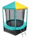 OPTIFIT Like Green 8ft 2,44 м (с крышей) Батут диаметром 8 футов (2,44 м) с крышей, защитной сеткой, лестницей, нижней защитной сетью и крепежом Технические характеристики: . Рама: 6 стальных труб оцинкованных снаружи и изнутри . Профиль рамы: ш38 Ч 2 мм . Пружины: 48 шт, длина 135 мм, цинковое покрытие, закаленная сталь, клиновидный дизайн . Материал прыжковой поверхности: полипропилен США . Мягкое покрытие для рамы и пружин: ПЭ, внутри пеноматериал толщиной 14 мм . Количество W-образных стоек: 3 шт, оцинкованные снаружи и изнутри . Профиль стоек: ш38 Ч 2 мм . Защитная сетка: стальные трубы с мягким покрытием из полиэтиленового пеноматериала . Высота защитной сетки: 167 см . Лестница: стальные трубы с покраской . Количество креплений в землю: 6 шт . В комплекте: защитная сетка, лестница, нижняя защитная сеть с карманами, крепеж для мягкого грунта . Стандарты качества: CE, GS, EN13219, EN71, REACH . Гарантия: 1 год . Цвет крыши: зеленый, зелено-желтый, желтый . Производитель: Китай . Максимальная нагрузка на батут: 150 кг Размеры и вес в упаковке: 130 х 44 х 25 см / 50 кг Высота батута с сеткой: 230 см Высота рамы: 63 см Вес: 45 кг Описание: Батут OPTIFIT Like Green диаметром 8 футов (2,44 м) с крышей, защитной сеткой, лестницей, нижней защитной сетью и крепежом. Теперь Вы можете порадовать себя и своих детей батутом с крышей! Впервые в России компанией OPTIFIT представлен супер надежный и безопасный батут по доступной цене! Батут укомплектован крышей, для защиты от осадков и мусора, внутренней защитной сеткой увеличенной высоты, лестницей, нижней защитной сетью и комплектом крепежа для мягкого грунта (намного эффективнее растяжек)! Прочный и легкий в сборке батут OPTIFIT Like Green с диаметром 8 футов принесет море радости и здоровья Вам и Вашим детям. Отличительными особенностями батута являются: внутренняя защитная сетка увеличенной высоты, наличие нижней защитной сети с карманами, cтойки защитной сети имеют полноценную длину, которые являются дополнительн