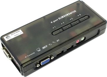 Переключатель MultiCo EW-K1904U 4-port Slim KVM Switch with Cable (клавиатураUSB+мышьUSB+VGA15F+Audio+Mic)
