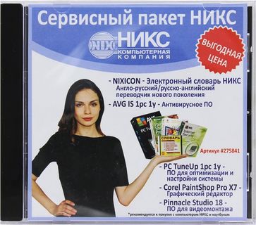 - Сервисный пакет НИКС (Nixicon, AVG IS 1pc 1y, PC TuneUp 1pc 1y,Corel PaintShop Pro X7, Pinnacle Studio 18) по выгодной цене 2 656 р. руб.;
