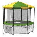 UNIX 10ft Inside Green с крышей Батут UNIX 10ft Inside 3,05 метра с защитной сетью, лестницей и крышей Технические характеристики: . Рама: особо прочная гальванизированная сталь 38 х 1,5 мм . Материал прыжкового полотна: перматрон (Permatron) . Материал защитного мата: PVC material . Материал сетки: 100% polyethylene (PE) . Материал нижней сетки: 100% polyethylene (PE) . Ширина защитного мата: 26 см . Количество слоев защитного материала: 4 шт (Premium) . Количество пружин: 54 шт . Закаленные и покрытые цинком пружины . Ножки W-формы: 3 шт . Дополнительные фиксаторы, защита от ветра: 3 шт . Система крепления рамы и опор: T-connector (толщина стали 2,2 мм) . Тип крепления сетки: внутренний . Защита от нежелательного открывания входа . Закрытое цокольное пространство . В комплекте: - дополнительные фиксаторы (защита от ветра) - батут - защитный мат - защитная сеть - защитная сеть нижняя - лестница - крыша - инструкция на русском языке . Стандарты качества: ISO 9001 . Артикул: TRU10INGR+ROU10GR . Цвет: зеленый/желтый . Гарантия: - на мягкие детали и пружины: 1 год - на раму батута: 2 года - на раму крыши: 2 года . Торговая марка: Россия . Страна изготовления: КНР . Максимальный вес пользователя: 150 кг Размеры и вес в упаковке: - 1 упаковка: 161 х 51 х 25 см / 56 кг (батут) - 1 упаковка: 102 х 33 х 20 см / 22 кг (крыша) Высота батута с защитной сетью: 241 см Высота защитной сети: 165 см Высота рамы: 76 см Вес: 72 кг Описание: Батут UNIX 10ft Inside Green диаметром 3,05 метра с крышей, внутренней защитной сетью и лестницей для ежедневного использования детьми и взрослыми. Интернет магазин SportLife предлагает выгодные условия приобретения батута UNIX 10ft Inside Green диаметром 3,05 метра с крышей, внутренней защитной сетью и лестницей с доставкой по Москве и России. Металлический каркас батутов выполнен из особо прочной гальванизированной стали с использованием новейшей системы креплений деталей рамы батута «T-Conneсtor» (толщина стали