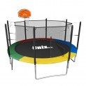 UNIX Simple Color (inside) Basketball 10ft Батут с баскетбольным щитом диаметром 10ft (305 см) Технические характеристики: . Тип защитной сетки: внутренняя . Рама: особо прочная сталь 38 х 1,5 мм с двойной оцинковкой . Материал прыжкового полотна: перматрон (Permatron) . Материал защитного мата: PVC material . Материал сетки: 100% polyethylene (PE) . Ширина защитного мата: 26 см . Количество слоев защитного материала: 3 шт . Количество пружин: 54 шт, длинной 140 мм . Закаленные и покрытые цинком пружины . Ножки W-формы: 3 шт . Система крепления рамы и опор: T-connector (толщина стали 2,4 мм) . Защита от нежелательного открывания входа: дополнительные фиксаторы . Баскетбольный щит: полиэтилен (65 х 40 см), со специальным стальным крепежом для установки на батут . Кольцо: сталь в мягком материале с сеткой . В комплекте: - батут - защитная сеть - лестница - баскетбольный щит с креплением - баскетбольное кольцо с сеткой - баскетбольный мяч с насосом - инструкция на русском языке . Стандарты качества: ISO 9001 . Цвет: color . Артикул: TRSI10INC/BASKUCL . Гарантия на раму: 2 года . Фирменная гарантия: 1 год . Торговая марка: Россия . Страна изготовления: КНР . Максимальный вес пользователя: 140 кг Размеры и вес в упаковке: - 1 упаковка: 161 х 51 х 25 см / 45 кг (батут) - 1 упаковка: 66 х 42 х 6 см / 3 кг (баскетбольный щит) Высота батута с баскетбольным щитом: 285 см Высота защитной сети: 165 см Высота рамы: 76 см Вес: 44,5 кг Описание: Батут UNIX Simple Color (inside) с баскетбольным щитом диаметром 10ft (305 см) для ежедневного использования детьми и взрослыми. В комплекте с батутом поставляется баскетбольный щит с кольцом, мячом и насосом, что обеспечивает увлекательное и полезное времяпровождение на батуте. Серия Simple батутов торговой марки UNIX line - это простота и легкость сборки, качественные материалы, широкий выбор размеров и цветовых решений. Ориентирован преимущественно на детей и подростков. Металлический каркас батута выполнен из ос