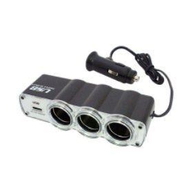 Напряжение 12 / 24 В Мощность 60 Вт 3 гнезда прикуривателя USB разъем Разветвитель прикуривателя автомобиля позволяет подключать к гнезду прикуривателя одновременно несколько устройств. Это очень удобно однако нужно понимать что суммарная потребляемая мощность, подключенного оборудования, должна быть в пределах допустимых параметров. Переходник оборудован разъемом USB для питания любых мобильных телефонов коммуникаторов или плееров. None