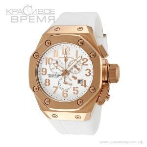 Коллекция: TRIMIX DIVER Корпус: нержавеющая сталь, 46x14мм (ШxТ) Водозащита: 200 метров Гарантия: 2 года. Механизм: ETA G10.211 Комплектация: часы, фирменная упаковка, инструкция, гарантийный талон. Особенности: Высококачественный швейцарский кварцевый механизм с хронографом. Календарь (дата). Люминесцентные минутная и часовая стрелки, а также цифры. Позолоченный безель из нержавеющей стали. Стекло из высокопрочного сапфира. Матовый полированный корпус из нержавеющей стали с покрытием розовым золотом. Высококачественный белый каучуковый ремешок. Позолоченная пряжка из нержавеющей стали с логотипом. Все представленные на сайте товары, являются оригинальными. None