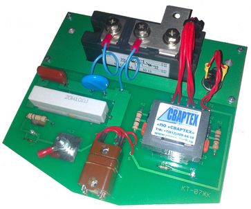 - индикация прохождения импульсов управления на поджиг тиристоров (загорается светодиод). C января 2012 года вместо оптронов ТО-125 применяются импульсные трансформаторы, которые существенно повышают надежность и срок службы тиристорных контакторов.