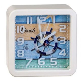 Часы будильник Perfeo Quartz PF-TC-014, квадратные, 10.5x10.5 см, штурвал (PF_C3151)